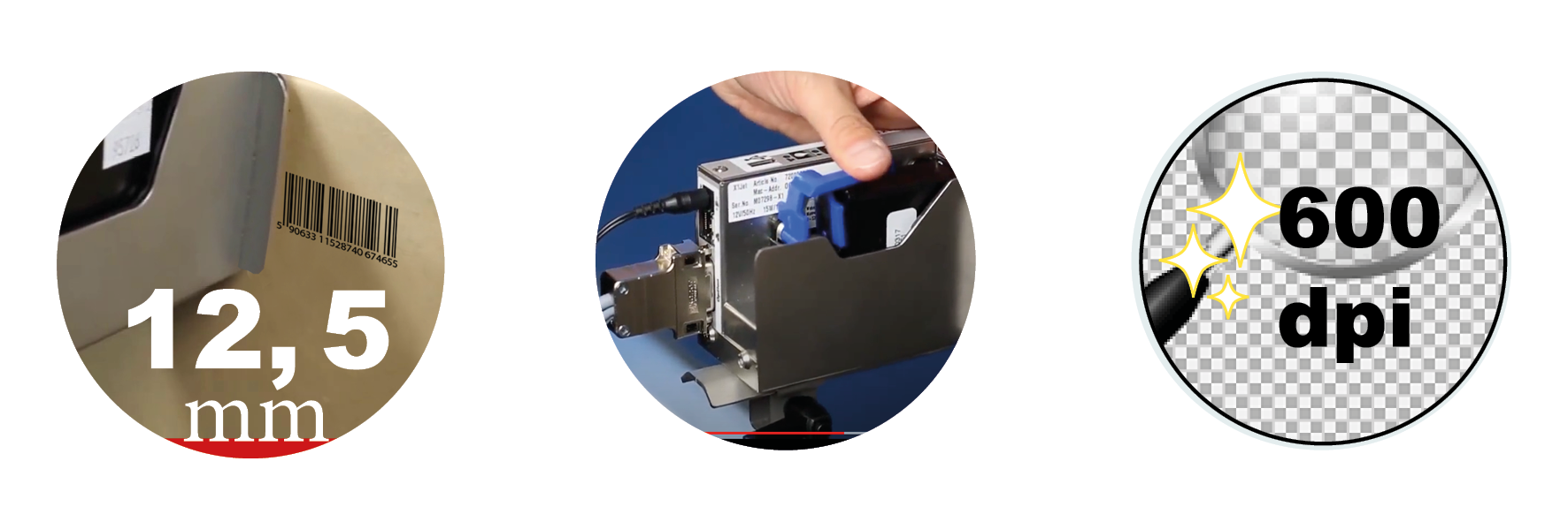 intégré dans le produit (signal d'entrée externe en option). Impression directe par pression sur le bouton de la poignée.
